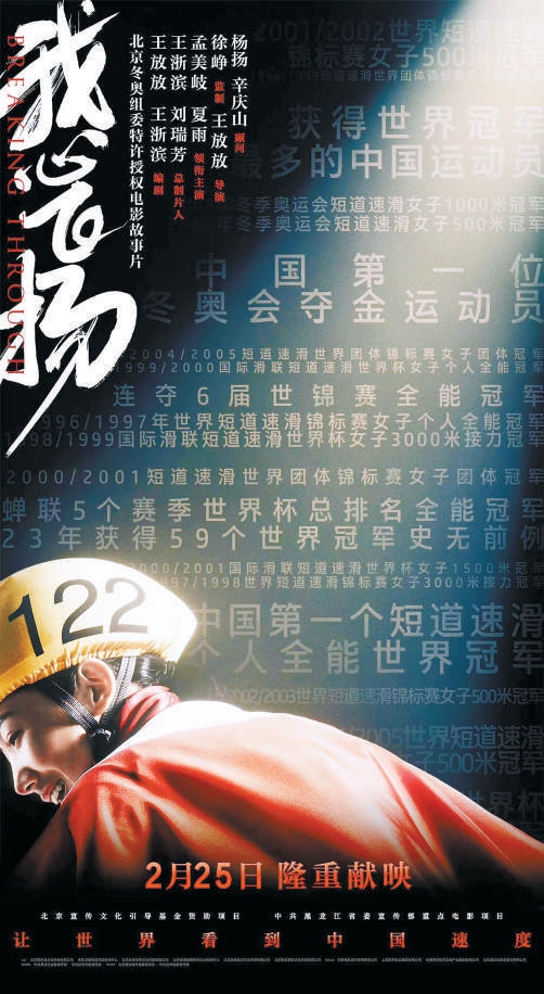 《我心飞扬》灵感源于中国短道速滑运动员杨扬的真实经历,她在2002年美国盐湖城冬奥会短道速滑女子500米项目中夺得中国冬奥会历史上的第一块金牌,实现了“零的突破”。《我心飞扬》主创团队敏锐抓住这一题材,历经4年艰苦创作,终于在2022年北京冬奥会和冬残奥会举办之际顺利推出,成就一场文化和体育的精彩对话。影片充分展现出短道速滑这项运动的魅力,直击人物努力拼搏的内心世界,展现了中国体育人的热血与不屈。片中的人物原型杨扬和她的教练辛庆山担任了影片顾问。