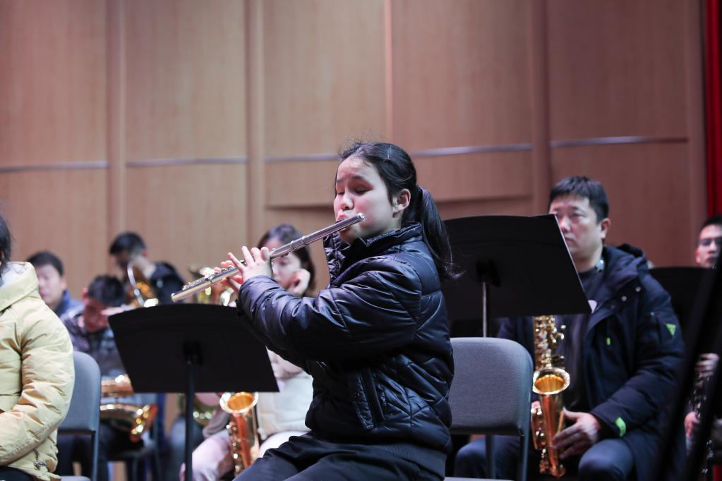 在管乐团里,大鼓相当于整个乐团的节拍器。“我要根据乐队的强弱快慢来决定自己的速度,与同学相互配合,才能完成一首曲子。”小浩屿说,音乐让他懂得了合作的重要。