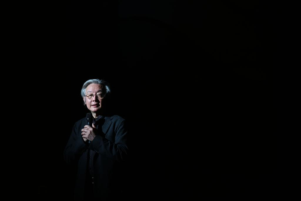 3月12日,话剧《春潮》总导演王晓鹰在演出前与观众见面。