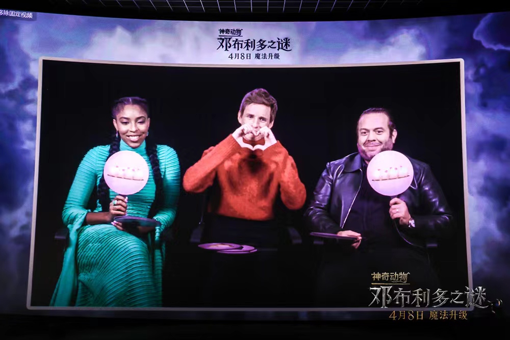 4月6日,电影《神奇动物:邓布利多之谜》在北京举办中国首映礼。首映现场与“魔法世界”梦幻连线,裘德·洛和麦斯·米科尔森同框问候中国观众,“小雀斑”埃迪·雷德梅恩、丹·福勒、杰西卡·威廉姆斯等主创实时连线,现身讲述幕后故事。