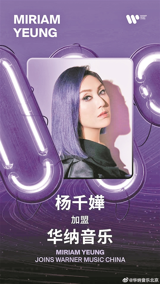 近日,华纳音乐正式宣布歌手楊千嬅加盟。华纳音乐在官宣微博中称:“出道27年,她为华语乐坛献出无数经典作品,能演能唱的她,以情见长,寓情入曲,歌曲风格自成一派,深受广大歌迷们的喜爱。期待未来解锁更多音乐成就!”