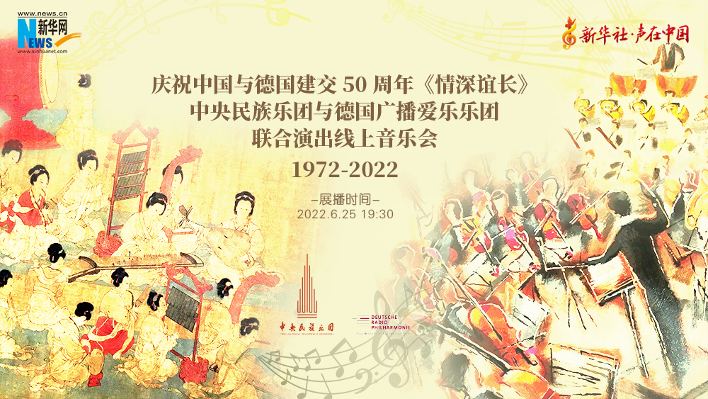 2022年是中德建交50周年,新华社声在中国工作室联合中央民族乐团携手德国广播爱乐乐团,打造线上音乐会《情深谊长》,并将于6月25日19点30分线上展演。
