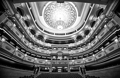 7月8日中央歌剧院剧场上演《茶花女》剧场的建筑造型融合了东西方文化的美学理念