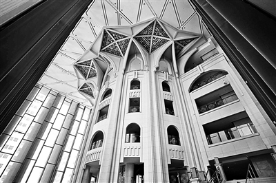 紧邻东二环特殊的地段,中央歌剧院剧场总建筑面积虽然达到40902平方米,但是占地面积并不大,只有8300平方米。“当时这里是一片停车场,要在这个狭长的地带上建设一个专业的剧场,面临的困难非常多。”陈超说,为了解决场地狭小带来的诸多困难,设计师找到了人性化的匠心独运。与其他剧场品字形的设计不同,中央歌剧院剧场的舞台采用田字形的设计,由主舞台、2个侧舞台、后舞台以及侧后舞台五部分组成,既可单独使用也可任意组合使用,实现推拉升降旋转,以提高舞台布景与使用的灵活性。