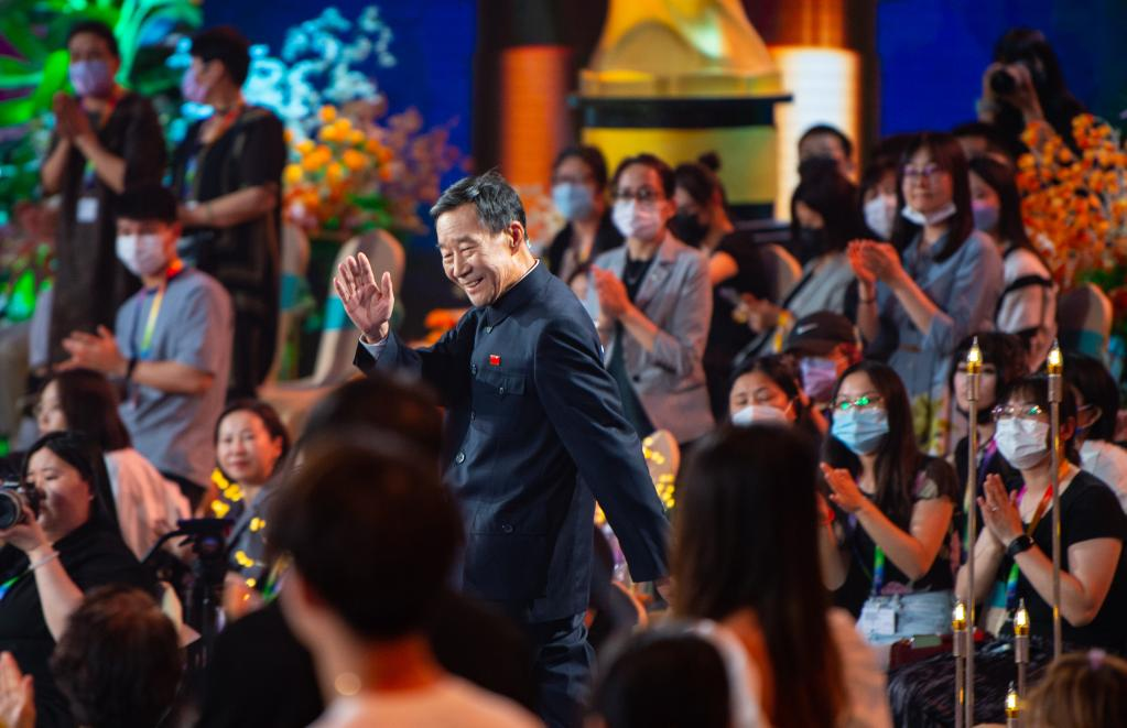 8月12日,“天坛奖”国际评委会主席李雪健走向开幕式主舞台。