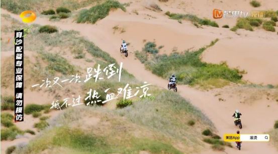 第一期还是感受摩托骑行的简单模式,第二期突然开启地狱模式,最终完成308公里高速公路、15公里峡谷路段和25公里沙漠穿行的壮举,这样硬核的“滚烫”是在屏幕上不多见的。而他们的挑战与收获,也在与治沙植树人员的交流中,给观众带来了更多的震撼、思考与能量。把车停稳在阿拉善沙漠出沙口的一刻,经验丰富的教练钱佩隆感慨哥哥们是“史上最快的速成班,穿越了这么大的沙漠”。在进入沙漠之前,他们在一天的训练时间里,高效地掌握了沙坡、沙坑以及流沙等复杂地貌的应对方式。而成绩背后,是一群为了完成梦想奋斗的普通人。为了保证团队整体的训练效果,其他人会陪着经验相对最少的仁科一直练到技能熟练掌握;许久没有骑车的郑钧独自加练,甚至在晚上吃饭的时候累到手抖而拿不稳筷子。