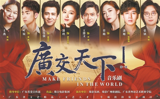 原创音乐剧《广交天下》预计于4月15日第133届中国进出口商品交易会(以下简称“广交会”)开幕当天,登陆友谊剧院。该剧是广东省文艺精品(文艺人才)专项扶持资金项目,由广东省委宣传部指导,珠江电影集团出品,珠影乐团、珠影广州歌剧院、广东省外语艺术职业学院音乐舞蹈学院作为演出单位。