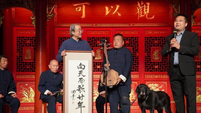 来自山西左权和武乡的盲艺人团队现场表演 中国工艺美术馆、中国非物质文化遗产馆供图