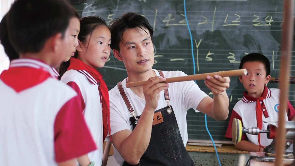 肖惠文教孩子们制笛
