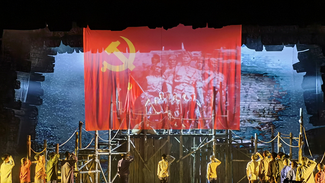 近日,房山区打造的原创音乐剧《没有共产党就没有新中国》在北京民族文化宫开启首场全市展演。来自中国文联、北京音协以及房山各乡镇、街道等单位的近800名观众,现场感受红歌创作背后的故事。接下来,该音乐剧还将在本市多地进行展演。
