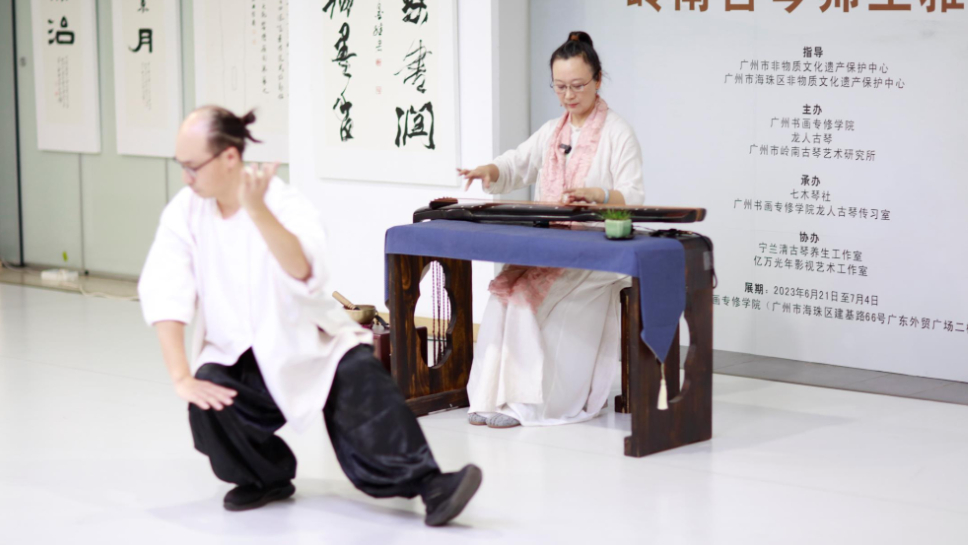 展览期间,举办十二位岭南古琴第十代嫡传弟子的拜师仪式暨古琴雅集活动。呈现师从岭南古琴第九代传承人宁兰清老师的十二位弟子谢君予、张冀智、张耀乙、刘子柔、杨智远、张珏嘉、严瑾、黄玄霖、曾于然、杨伊溧、刘依涵、谢宁弥元的岭南古琴艺术技艺传承与音韵之美。