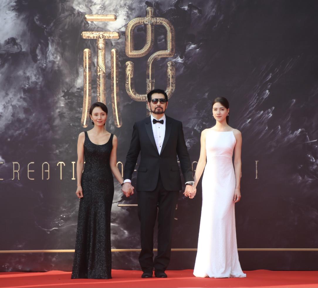 首映场地选在了中国电影博物馆,主办方将片中的很多道具都搬到了现场,既有制作精美的服装、以假乱真的马车,更有造型逼真栩栩如生的龙头。中国电影博物馆大厅几层楼高的屏幕上滚动播放着影片海报,让人仿佛置身于距今3000多年的远古战场之中。