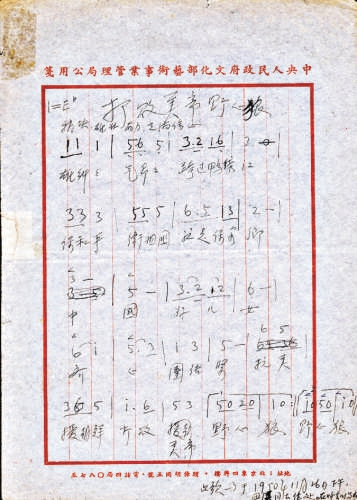 1950年周巍峙为《中国人民志愿军战歌》谱写的手稿。 供图/抗美援朝纪念馆