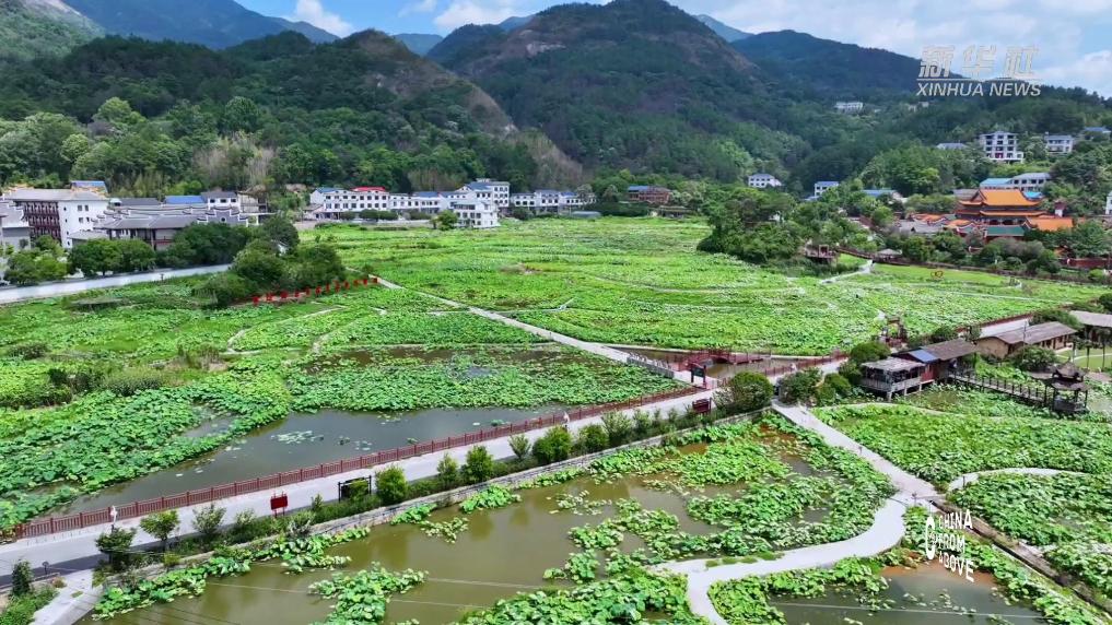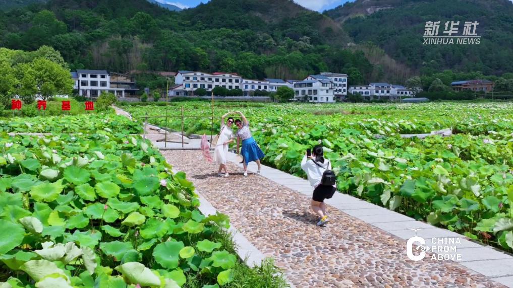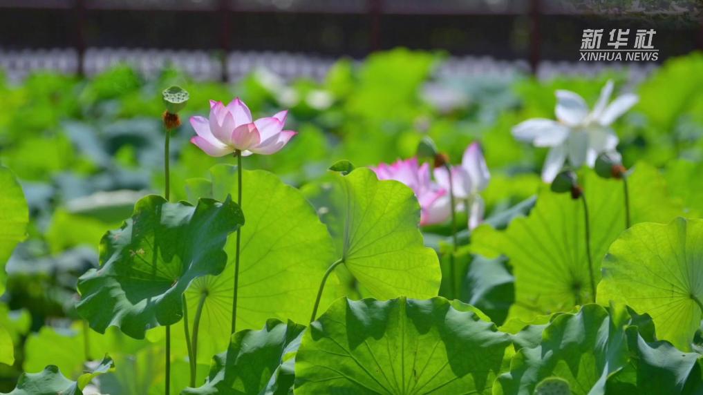 近日,湖南省衡阳市南岳区水帘洞景区的荷花开得正艳,吸引不少游人前来观赏游玩。