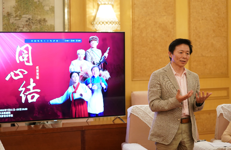 《同心结》是一部红色题材的经典歌剧,1981年由田川、任萍担任编剧,黄庆和、王云之、刘易民作曲,原中国人民解放军总政治部歌剧团创作首演。2023年是抗美援朝战争胜利70周年,天津音乐学院进行了创作复排。此番上演的《同心结》是音乐会版歌剧,乐队被设置在舞台之上,80人的青年交响乐团和110人的青年合唱团,全部由天津音乐学院师生班底组成。