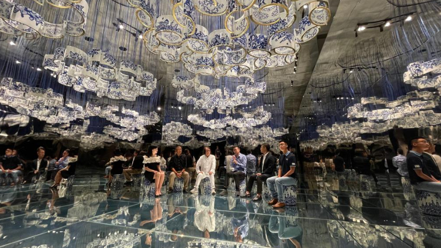 与会专家代表齐聚空间场景艺术《花的三重境》中,以绒瓷为天,以镜面为席,畅谈艺术、文化与奥林匹克的融合发展。