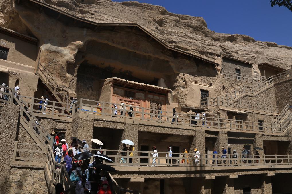 6月20日,游客在世界文化遗产甘肃敦煌莫高窟参观游览。新华社发(张晓亮 摄)