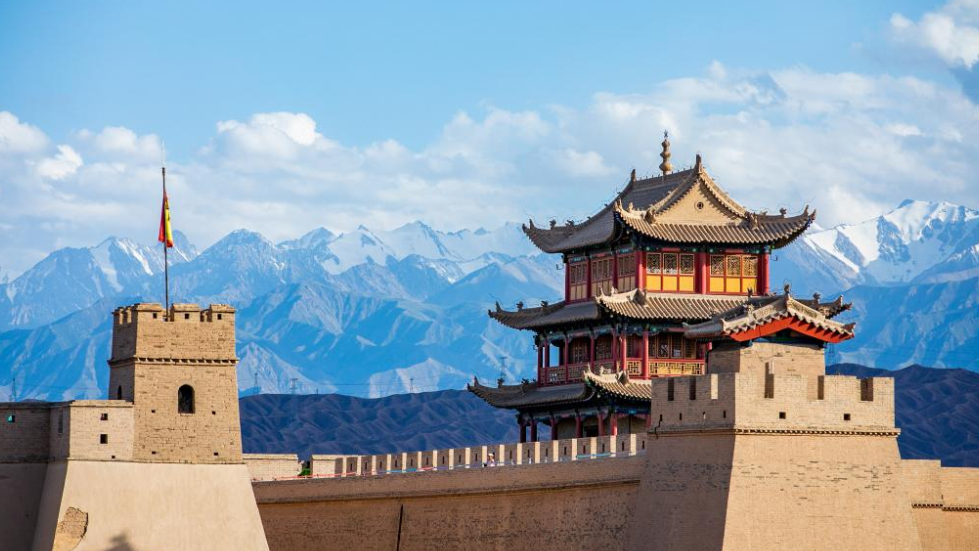 这是7月19日拍摄的祁连雪山与嘉峪关关城。新华社记者 郎兵兵 摄