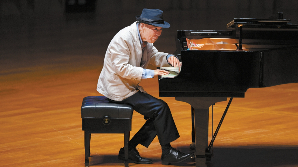 89岁高龄的日本爵士泰斗菅野邦彦走上舞台,小黑帽,白西装,脚步不快,脊背轻微有些佝偻,但手里的“小玩具”透露出老爷子的俏皮心思。扶着钢琴,菅野邦彦向观众深深鞠了标志性的一躬,随后开启了他轻巧的演奏。