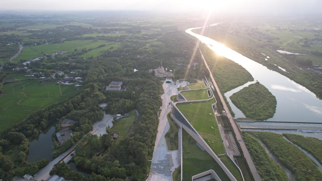 这是新建在鸭子河畔的三星堆博物馆新馆外景。新华社发(余嘉摄)