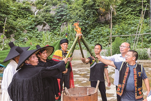 从8月5日起,隆林各族自治县多个彝族群众聚居村寨陆续举办火把节,彝族同胞和周边各族群众以及各地游客欢聚在一起,载歌载舞,共享节日欢乐。取火、火把驱害虫、祭送布谷鸟、抹黑脸、打磨秋、长桌宴、篝火晚会等彝族传统民俗活动精彩纷呈。