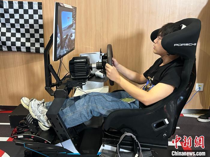 图为《GT赛车:极速狂飙》中国首映场现场,观影者体验赛车模拟器。徐豫 摄