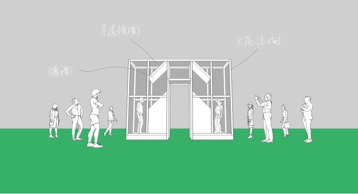 人面对镜子犹如生活面对戏剧,设计者想引起观者的哲理性反思:光与镜面中藏了一千个“我”,我们改如何看待、省悟那个不断变化中的自我?