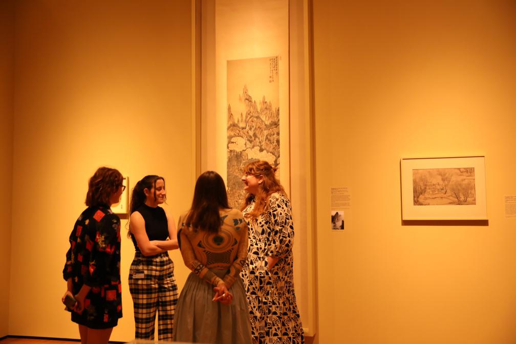 9月6日,在美国俄亥俄州克利夫兰艺术博物馆,观众在“人间天堂:中国江南珍宝展”上交谈。新华社记者施春摄