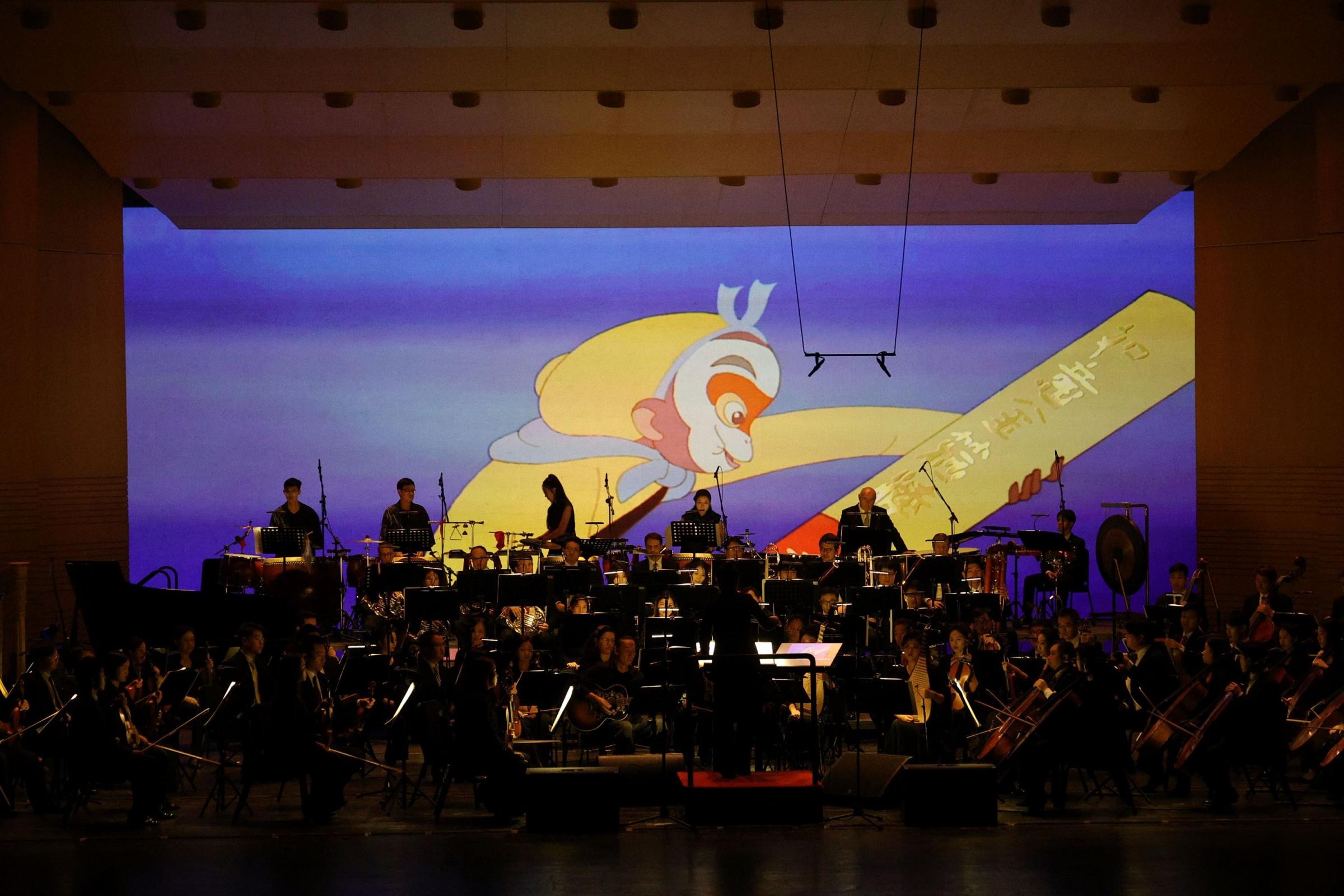 1922年,万氏兄弟创作出中国首部动画短片《舒振东华文打字机》,开启了中国动画新时代。转眼间,百年已过,为纪念中国动画的传承发展,交响舞曲《大闹天宫》的创作由此发轫。这部作品以《大闹天宫》动画片为基础,共分为“花果山美猴王”“东海得金箍棒”“官封弼马”等9个乐章,用乐队演奏配合影片播放的方式讲述了孙悟空怒反天庭这段家喻户晓的神话故事。