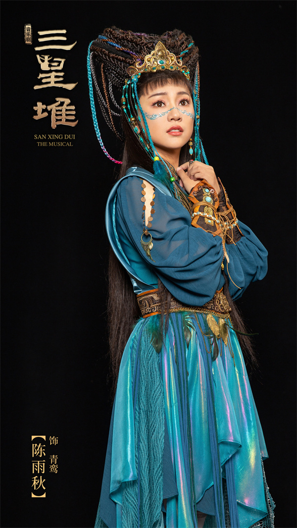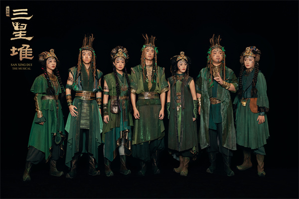 从左至右依次:陈雨秋、陈壬权、田思陈、赖剑超、蒋欣怡、王维、熊子慧(饰古蜀国子民)
