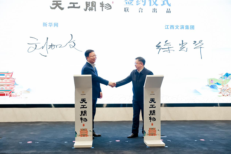 随后,徐光华分别与新华网签订舞台剧《天工开物》联合出品协议,与北京舞蹈学院签订舞台剧《天工开物》共同出品合作协议。