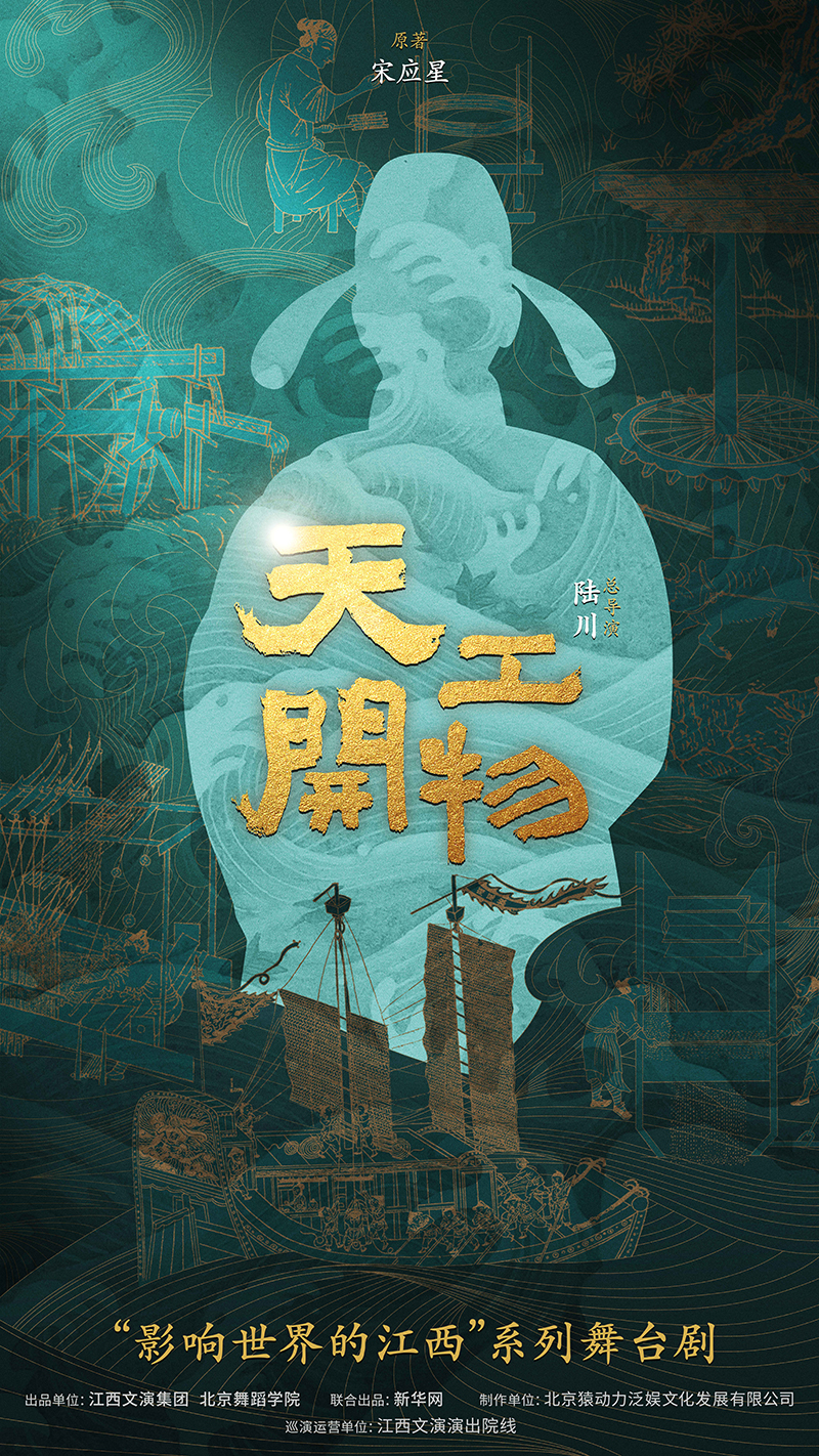 “影响世界的江西”系列舞台剧,由江西文演集团重磅打造,旨在通过江西元素传播中华文化和民族精神。《天工开物》是该系列舞台剧的开篇之作,以宋应星著书为题材,通过融合舞台、影像、科技等元素,力争多维立体呈现《天工开物》里中国古代科学技术的装置之美、技术之美、工艺之美。该剧整体紧扣中国传统艺术的美学特征,七个篇章均缀以东方韵味,铺垫情绪高潮,通过艺术的手法,不仅展示“天工开物”的魅力,也着力展现宋应星波澜壮阔的精神世界。