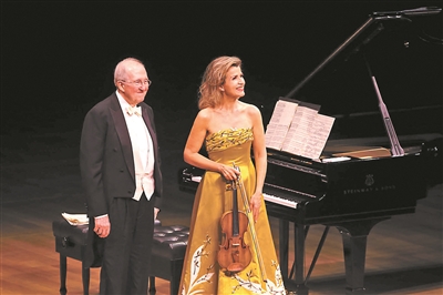 一身亮丽的抹胸长裙,脸上挂着迷人的笑容。时隔五年再度登台国家大剧院,已进入花甲之年的小提琴家安妮-索菲·穆特优雅依然。前晚,穆特携手合作36年的老搭档——钢琴家兰伯特·奥金斯,在国家大剧院音乐厅联袂呈现了莫扎特、舒伯特、克拉拉·舒曼和雷斯庇基等古典乐名家的弦乐经典,以纯粹热烈的演奏征服了全场观众。