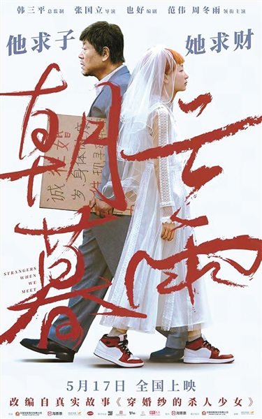 电影《朝云暮雨》宣布将于5月17日上映。影片改编自《穿婚纱的杀人少女》,由韩三平总监制,张国立执导,范伟、周冬雨领衔主演,宋佳、邓飞友情出演。这也是范伟、周冬雨的首次合作,身为同届金马奖影帝、影后,两人将第一次在大银幕上进行演技的正面交锋。影片已入围第十四届北京国际电影节“天坛奖”主竞赛单元。