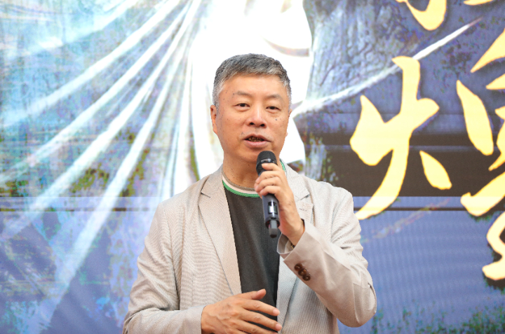 北京国话数字文化科技有限公司总经理苏子航介绍项目筹备基本情况。他表示,《受到召唤·敦煌》是中国国家话剧院今年的年度力作,是一部深度挖掘中华优秀传统文化的作品,更是一部体现新质生产力、集“戏剧艺术+数字科技”的创新之作,希望打造成为一部具有社会影响力的优秀戏剧作品。