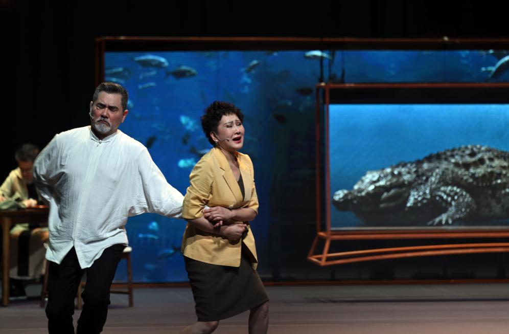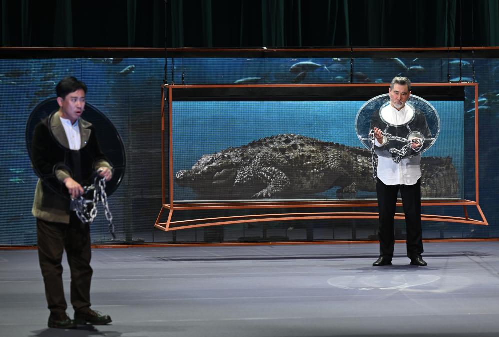 5月3日,演员在话剧《鳄鱼》中表演。新华社记者 金良快 摄