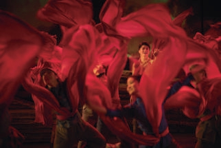 舞蹈诗剧《杨家岭的春天》创作灵感来自于美术瑰宝——延安木刻版画。舞台上,以延安木刻版画经典作品作为线索串联全剧,主创团队从古元、彦涵、计桂森等版画先驱的10余幅经典作品中提炼舞台画面和意象。大戏开场,宝塔屹立的“延安风景”便映入观众眼帘,木刻版画的形式赋予了宝塔山别样的线条美感,杨家岭的故事也从这简洁刚劲的线条中延展至当下的舞台,同时,亦融合了当代风格的汉族民间舞样式以及悠扬高亢的陕北风格音乐。