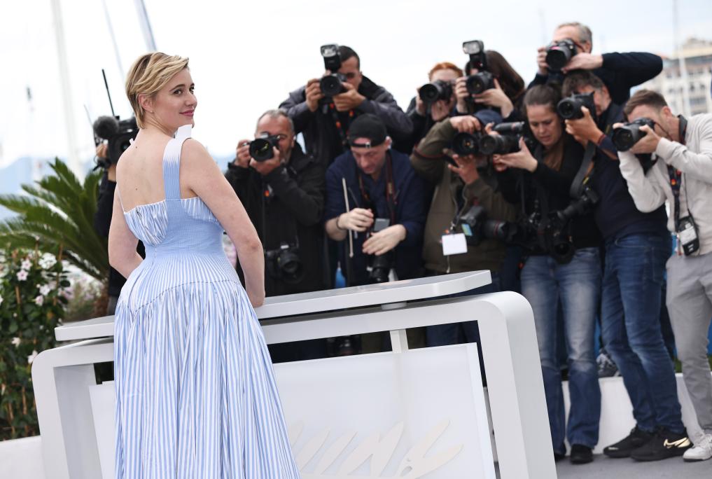 5月14日,在法国南部小城戛纳,第77届戛纳国际电影节主竞赛单元评委会主席、美国电影人格蕾塔·格维希亮相拍照式。新华社记者 高静 摄