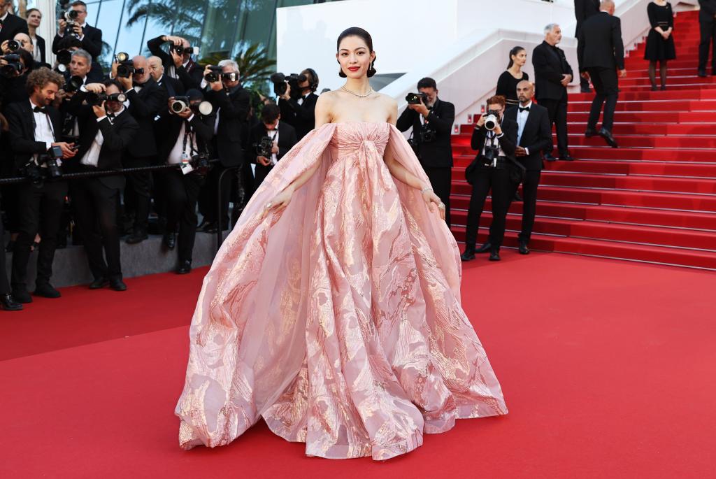 5月16日,在法国南部小城戛纳举行的第77届戛纳国际电影节上,中国演员钟楚曦出席主竞赛单元影片《大都会》的首映礼。新华社记者 高静 摄