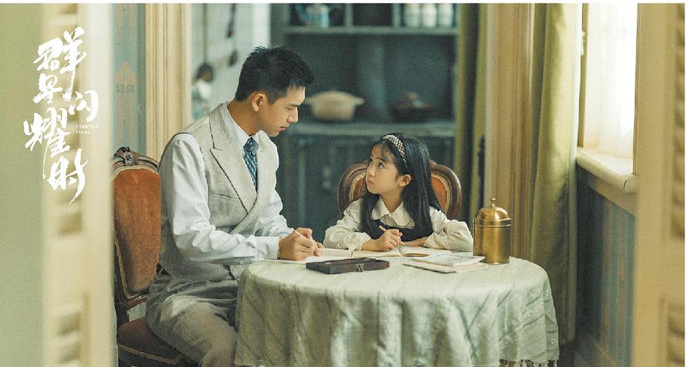 区别于以往谍战剧主打成年人间的角逐,《群星闪耀时》引入的一个儿童视角尤其吸睛。抗日战争前夕,爱国实业家的小女儿孟多慈突然经历人生的重大变故:父母在上海金门饭店惨遭暗杀。孟多慈机灵可爱足智多谋,通过向同龄小朋友借钱,“雇用”偶遇并搭救她性命的华桢帮她破案。从此,这一大一小两个人的命运交织在了一起。