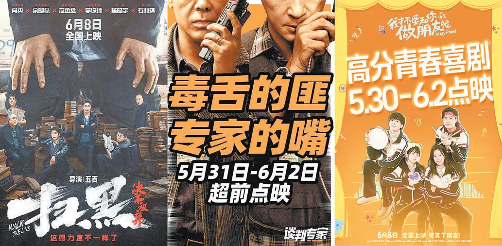 作为暑期档的开篇,为期三天的端午档已有12部影片扎堆上映。其中,由五百执导的电影《扫黑·决不放弃》聚焦扫黑题材,演员阵容更是云集了肖央、余皑磊、李诚儒、焦刚、石兆琪、李建义等多位扫黑影视作品的“熟脸”演员,被网友调侃聚齐“扫黑专业户”,堪称“内娱扫黑督导组”。《谈判专家》是导演邱礼涛自《拆弹专家》后新开的“专家”系列。影片改编自美国电影《王牌对王牌》,由刘青云、吴镇宇两位实力派演员强强对话,以“嘴”服人。前不久在北京国际电影节上斩获最佳影片、最佳编剧、最佳女配角三项大奖的《走走停停》,即将接受观众检阅。片中,演员胡歌携手久违大银幕的高圆圆,用喜剧的方式讲述贴近当下的生活和情感。《我才不要和你做朋友呢》采用近几年流行的“穿越到爸妈年轻时”的剧情模式,主打青春和友情牌。由黄轩、柳岩主演的《来福大酒店》以现实题材为基底,直面生离死别故事。此外,今年端午档还有《美国内战》《疯狂的麦克斯:狂暴女神》《机器人之梦》等3部进口影片上映,将有力丰富观众观影选择。