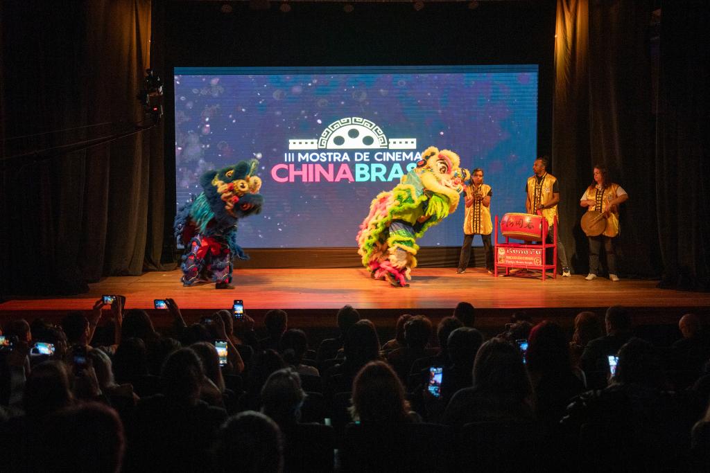 8月26日,在巴西里约热内卢,观众欣赏电影展开幕式的舞狮表演。新华社记者 王天聪 摄