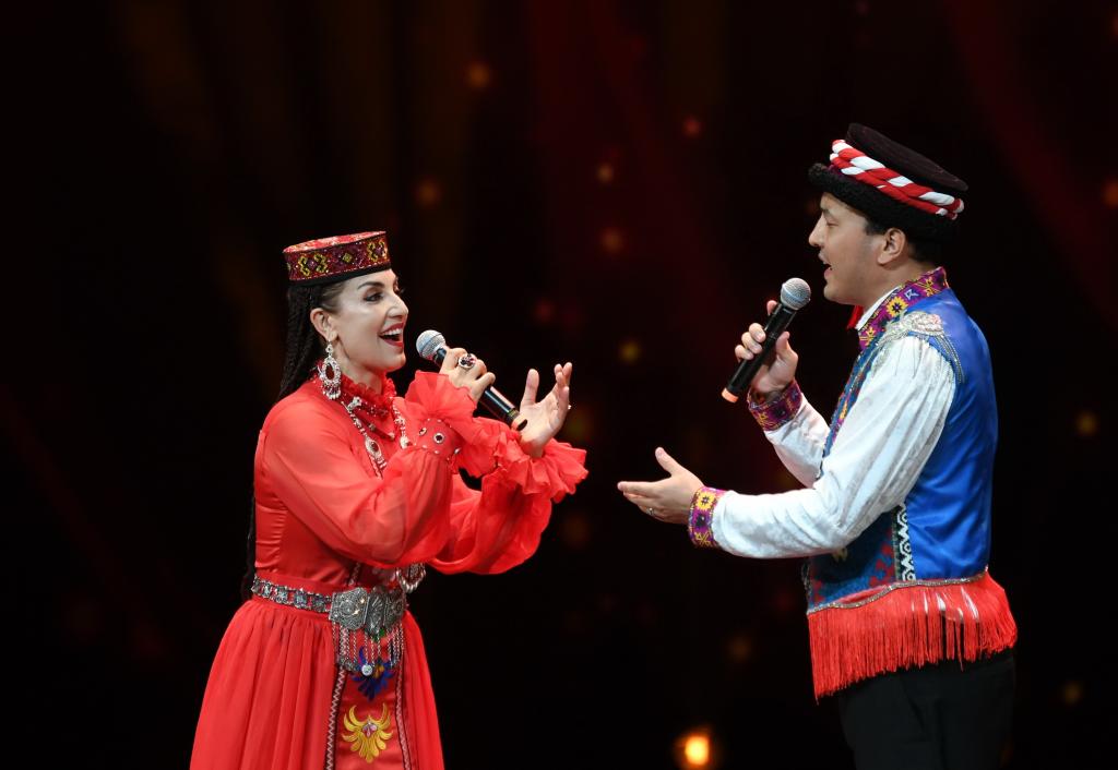 8月27日,演员演唱新疆民歌《花儿为什么这样红》。新华社记者 林善传 摄