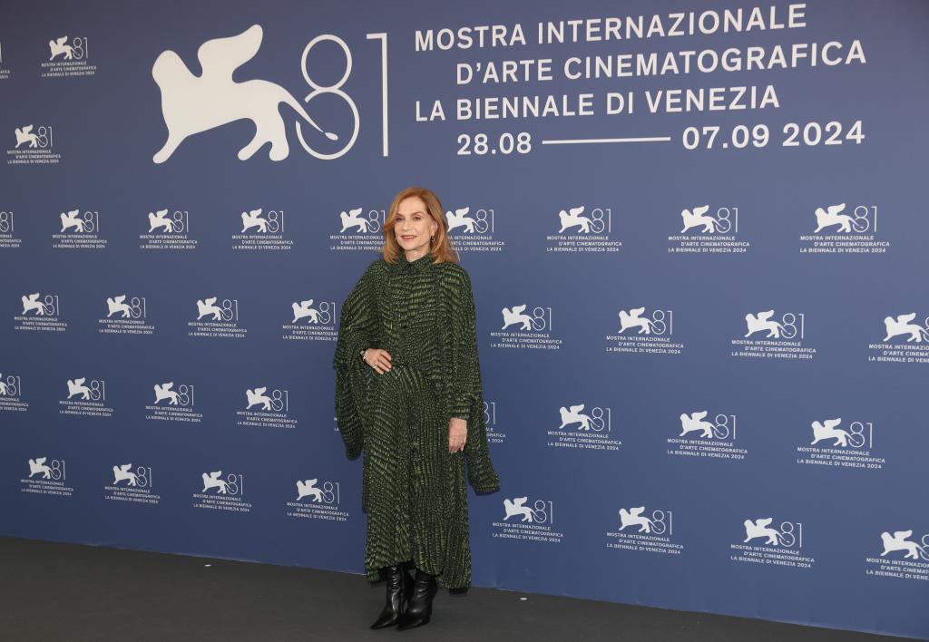 8月28日,在意大利威尼斯,第81届威尼斯电影节评委会主席、法国演员伊莎贝尔·于佩尔出席拍照式。新华社记者 李京 摄