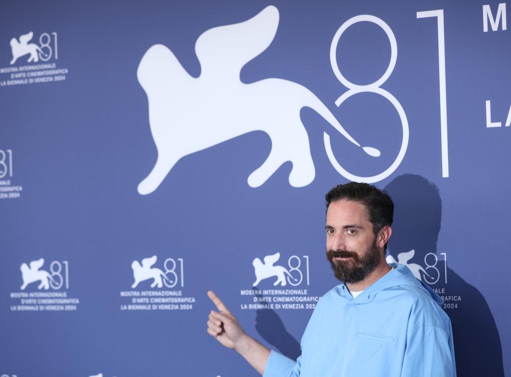 8月29日,在意大利威尼斯举行的第81届威尼斯国际电影节上,主竞赛单元影片《玛丽亚》导演帕布罗·拉雷恩亮相拍照式。新华社记者 李京 摄