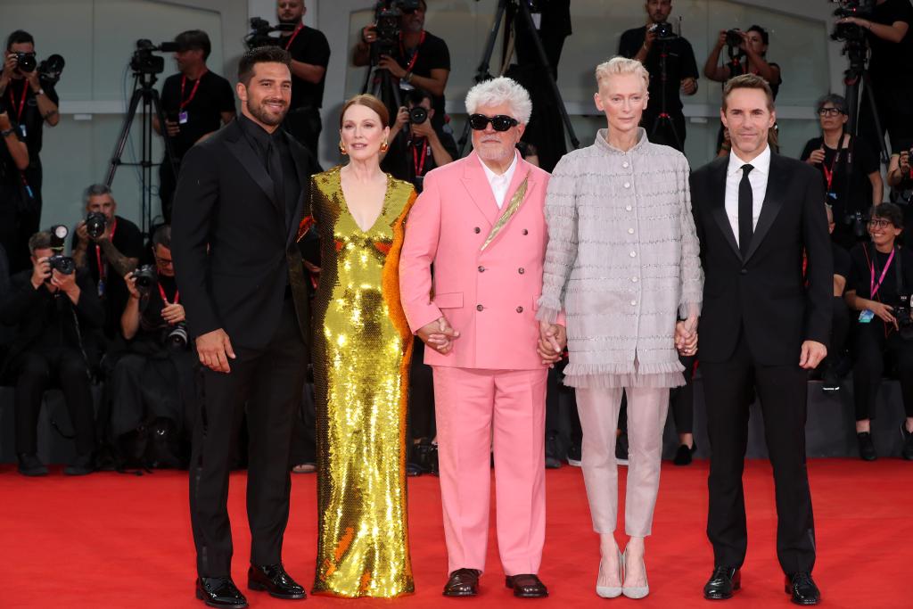 9月2日,在意大利威尼斯举行的第81届威尼斯国际电影节上,主竞赛单元影片《隔壁房间》主创亮相首映式红毯。新华社记者 李京 摄