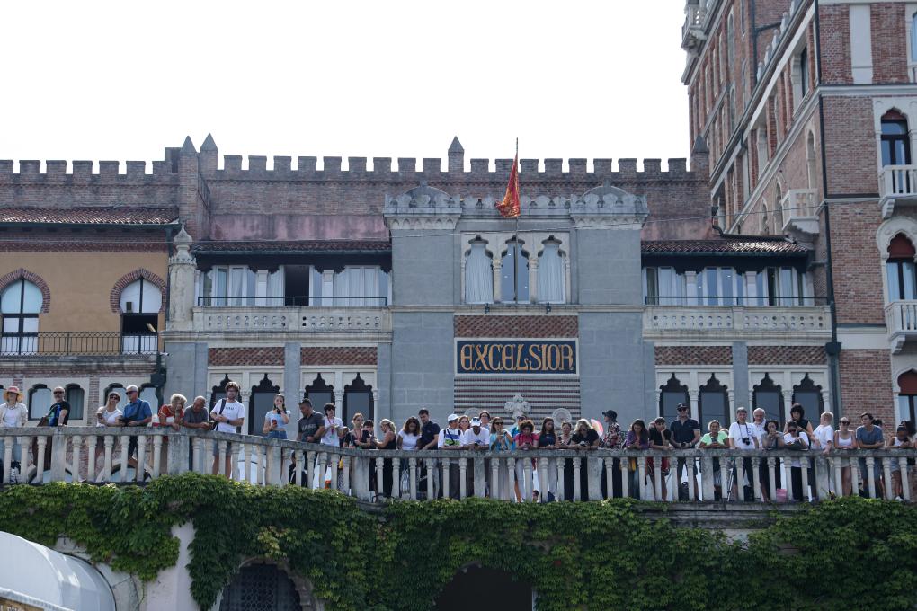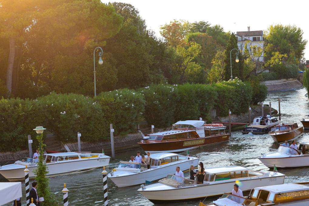 8月30日,在意大利威尼斯利多岛,嘉宾乘坐游艇到达至上饭店码头。新华社记者 李京 摄