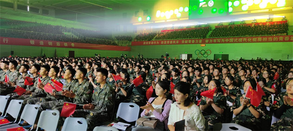北京科技大学2024级3500名新生在军事专家、电影艺术家的带领下,以观看国防军事电影、分享创作体会和观影感悟等形式,重温中国革命历史、共话新时代青年的使命担当、抒发为以中国式现代化全面推进强国建设、为民族复兴伟业贡献力量的雄心壮志。北京科技大学孙小雅同学和北京物资学院退役大学生士兵张喆同学的“青年为中国现代化挺膺担当”的激情演讲拉开了活动的序幕,国防大学原教授、知名军事专家徐焰带领同学们重温了波澜壮阔的解放战争史。电影《大决战》的创作人员代表导演宁海强、文艺评论家张东、演员卢奇、冯恩鹤、赵晓明讲述了这部电影背后的故事。中华女子学院赵晨阳同学、北京科技大学退役大学生士兵梁均恒激情朗诵了诗歌《英雄》,深情讴歌了为建立新中国献出生命的革命先烈。北京科技大学的官鑫、洪之菲等6名同学用歌声《我爱你中国》表达青年学子的拳拳爱国之心。10名来自于解放军仪仗司大队的退役士兵、旗帜队员将国旗迎进会场,全场同学们齐声高喊 “强国有我 我爱国防”的口号,将现场气氛推向高潮,成为一场生动的国防教育课。