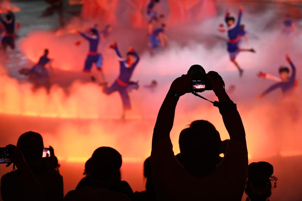 9月20日,游客在贵州省雷山县大塘镇观看苗族歌舞诗剧《仰欧桑》。新华社发(陈孝新摄)