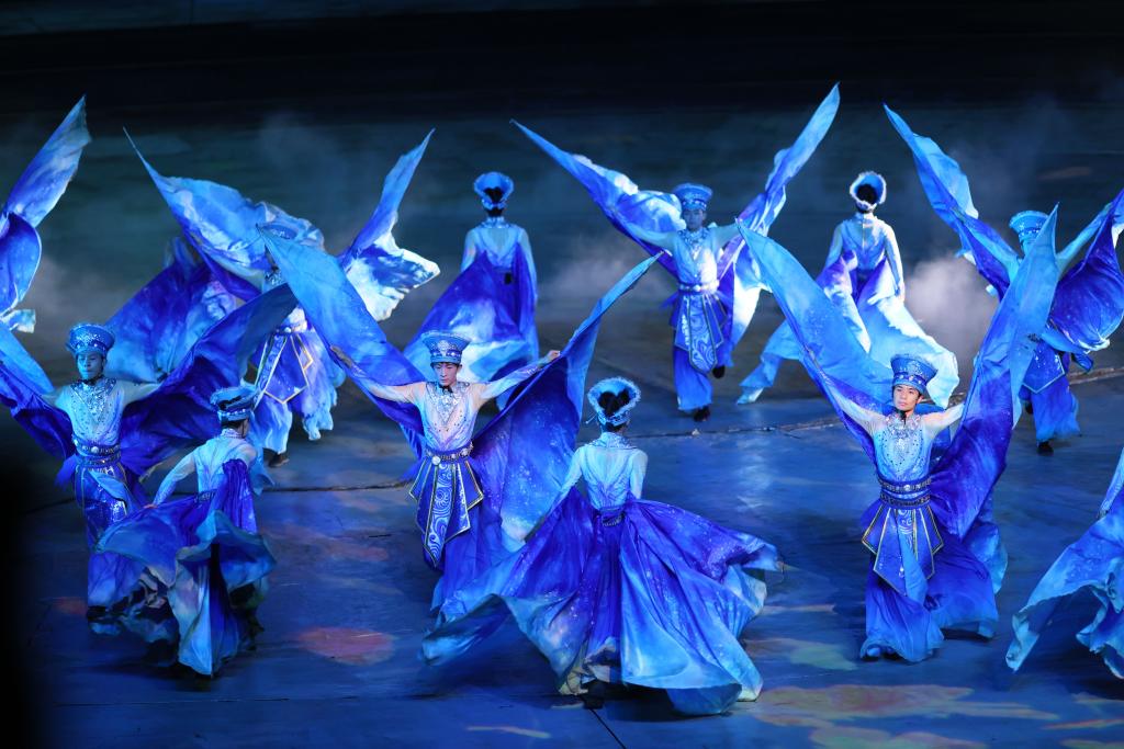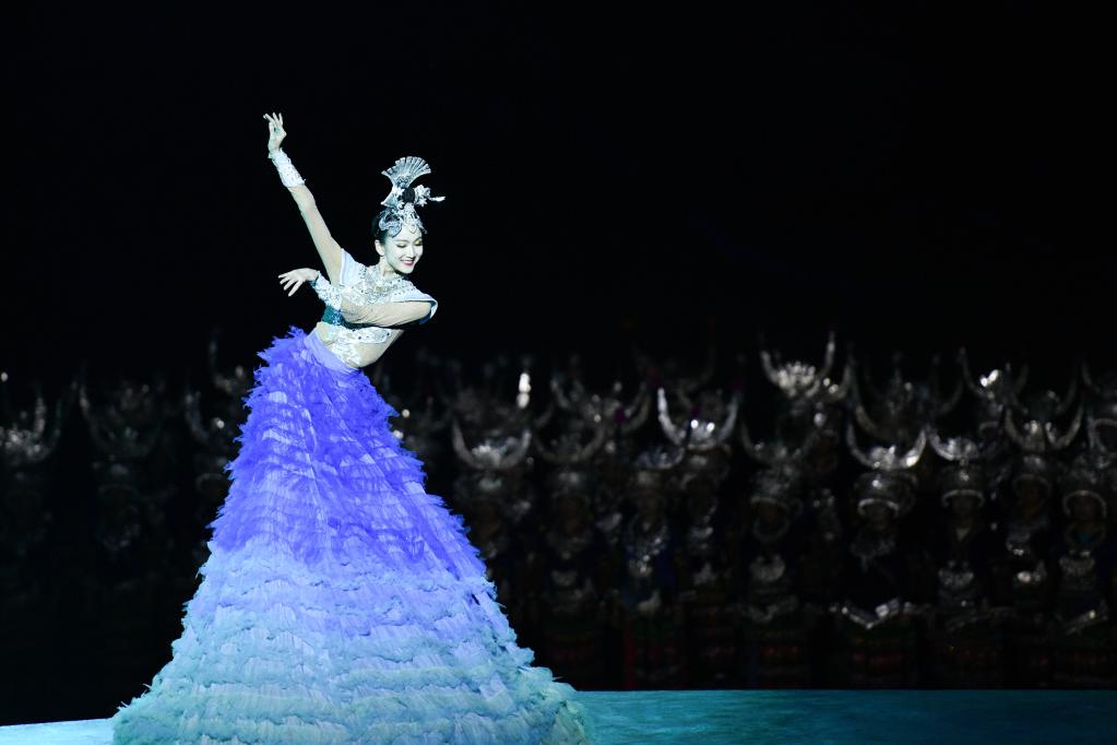 9月20日晚,演员在贵州省雷山县大塘镇表演苗族歌舞诗剧《仰欧桑》。新华社记者 杨文斌 摄